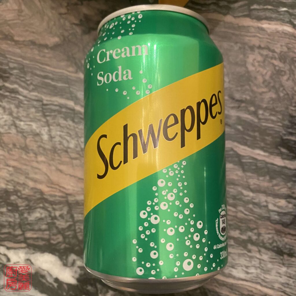 Schweppes Cream Soda 玉泉忌廉 (Cantonese: yoke chuen gei leem) is a very popular Hong Kong soft drink. It’s not like the pink ones we have in the west. My sister likes to drink this with hot pot.